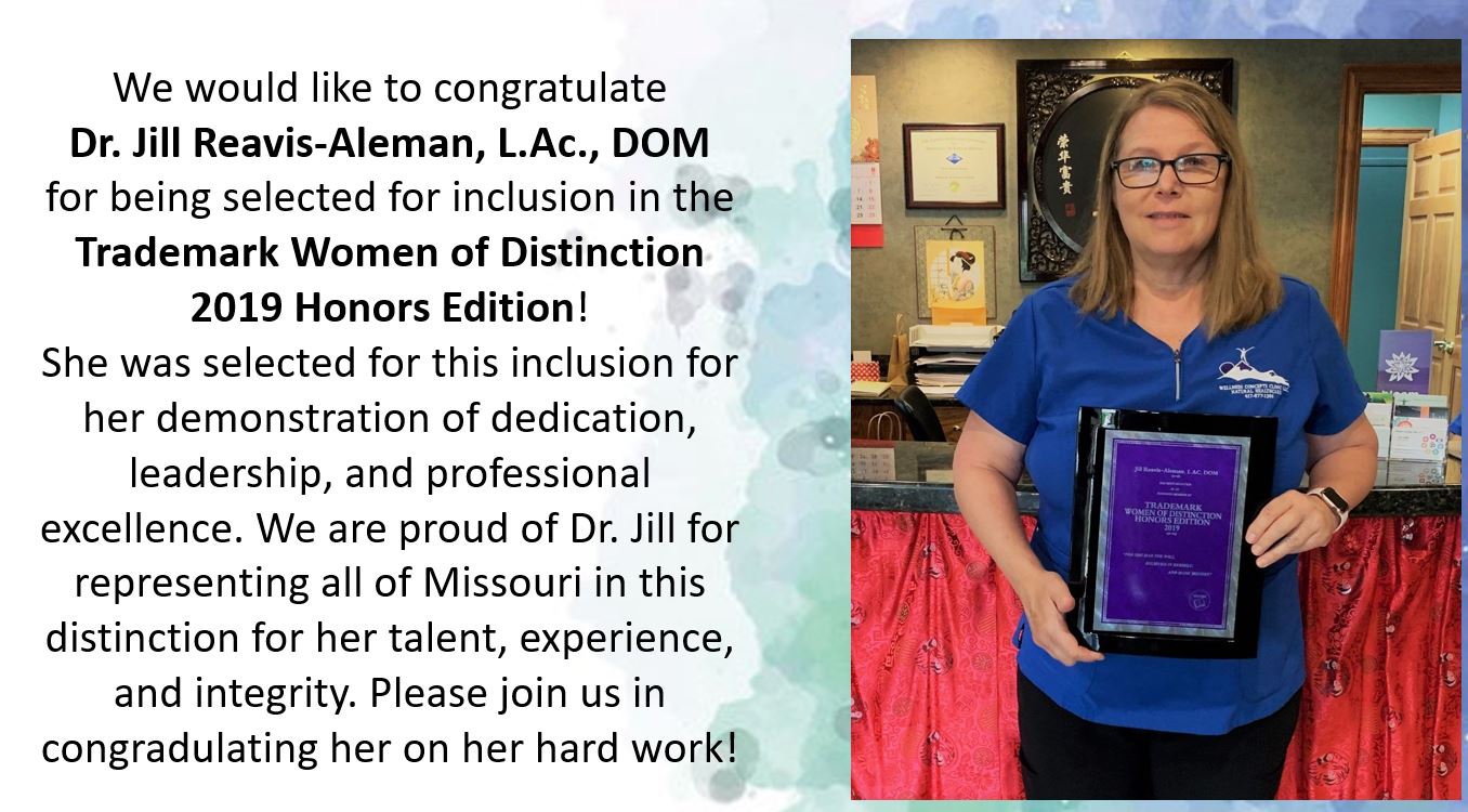 Dr. Jill Reavis-Aleman L.Ac., DOM, LMT started as a massage therapist over 25 years ago.She is a MO Licensed Acupuncturist, Massage Therapist, and Massage Therapist Mentor. She is a Doctor of Oriental Medicine. She did her infertility studies in San Fransico, CA and seminars with the Pacific College of Oriental Medicine in San Diego, CA.